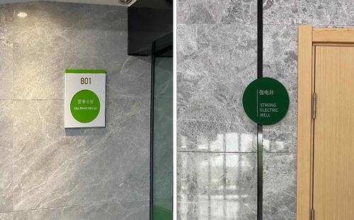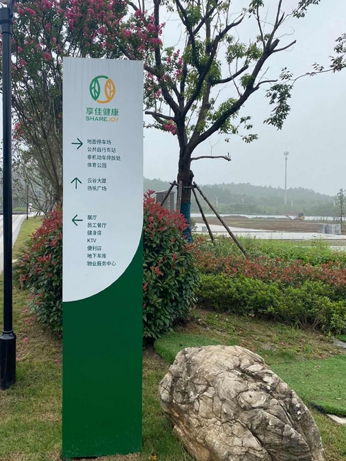 享佳健康園區内的導視标識由常州明道标識負責設計制作,标識導視牌包括:公司精神堡壘、廠區指示牌、門号牌、功能區标牌、樓層索引等标識标牌。
